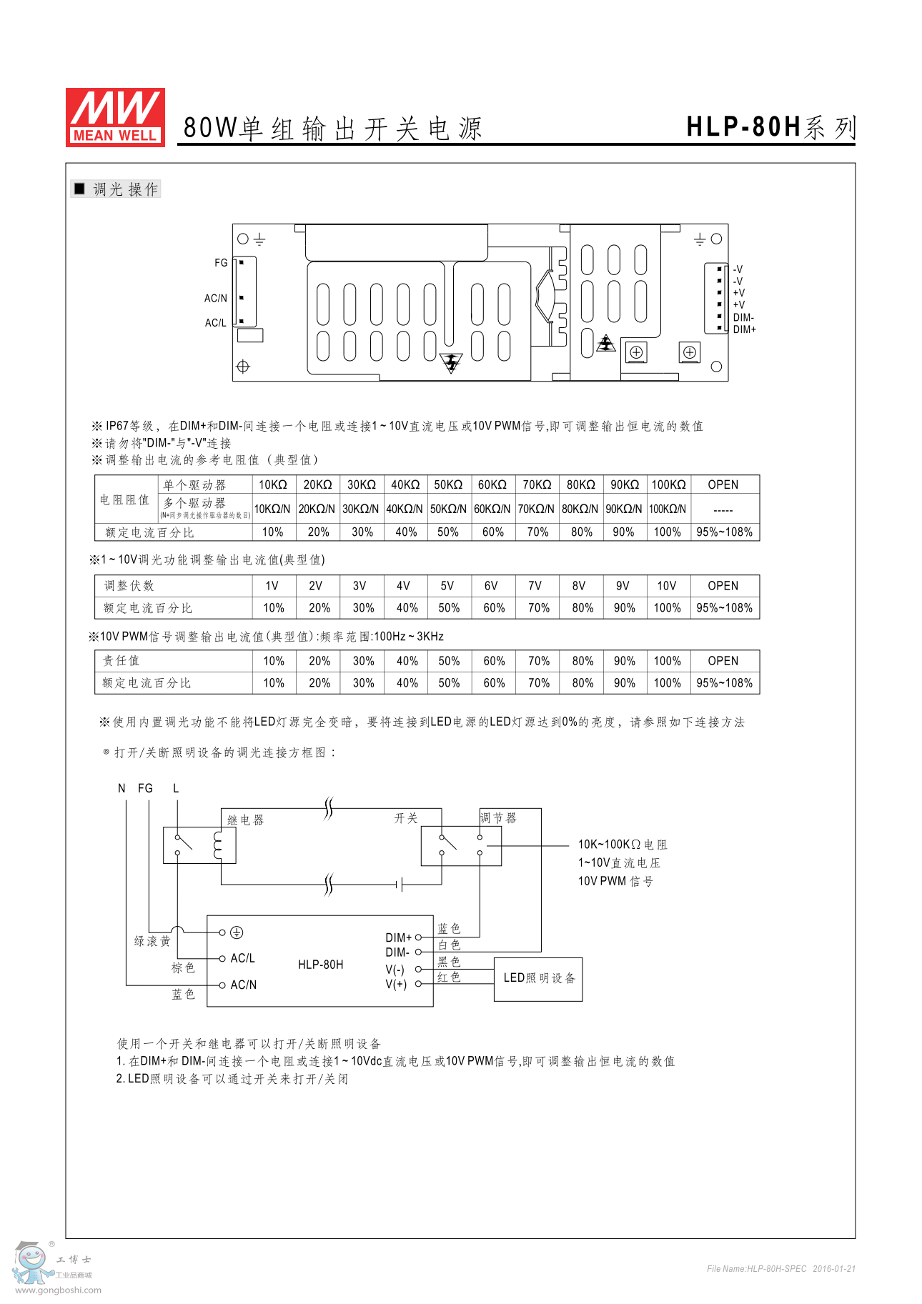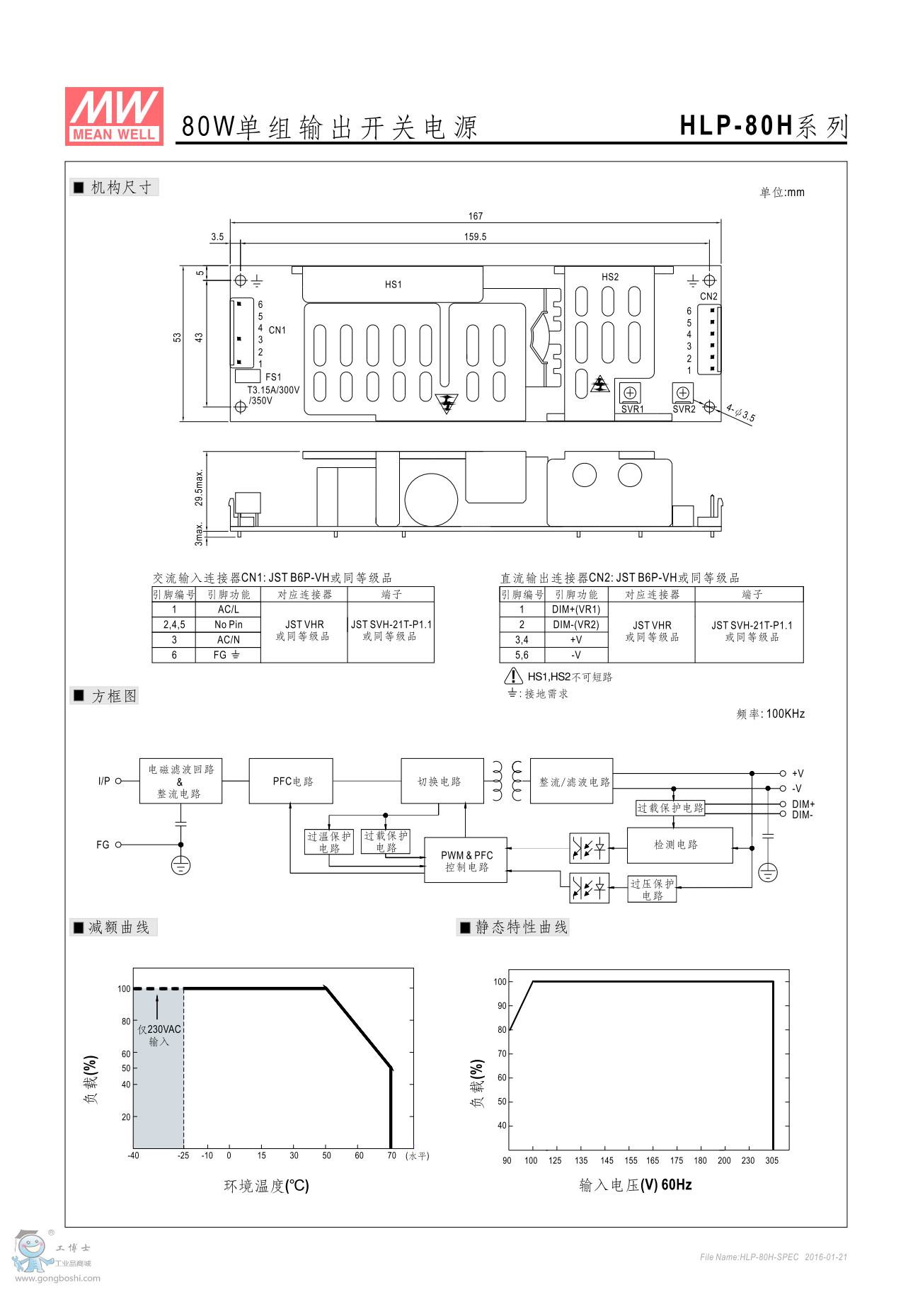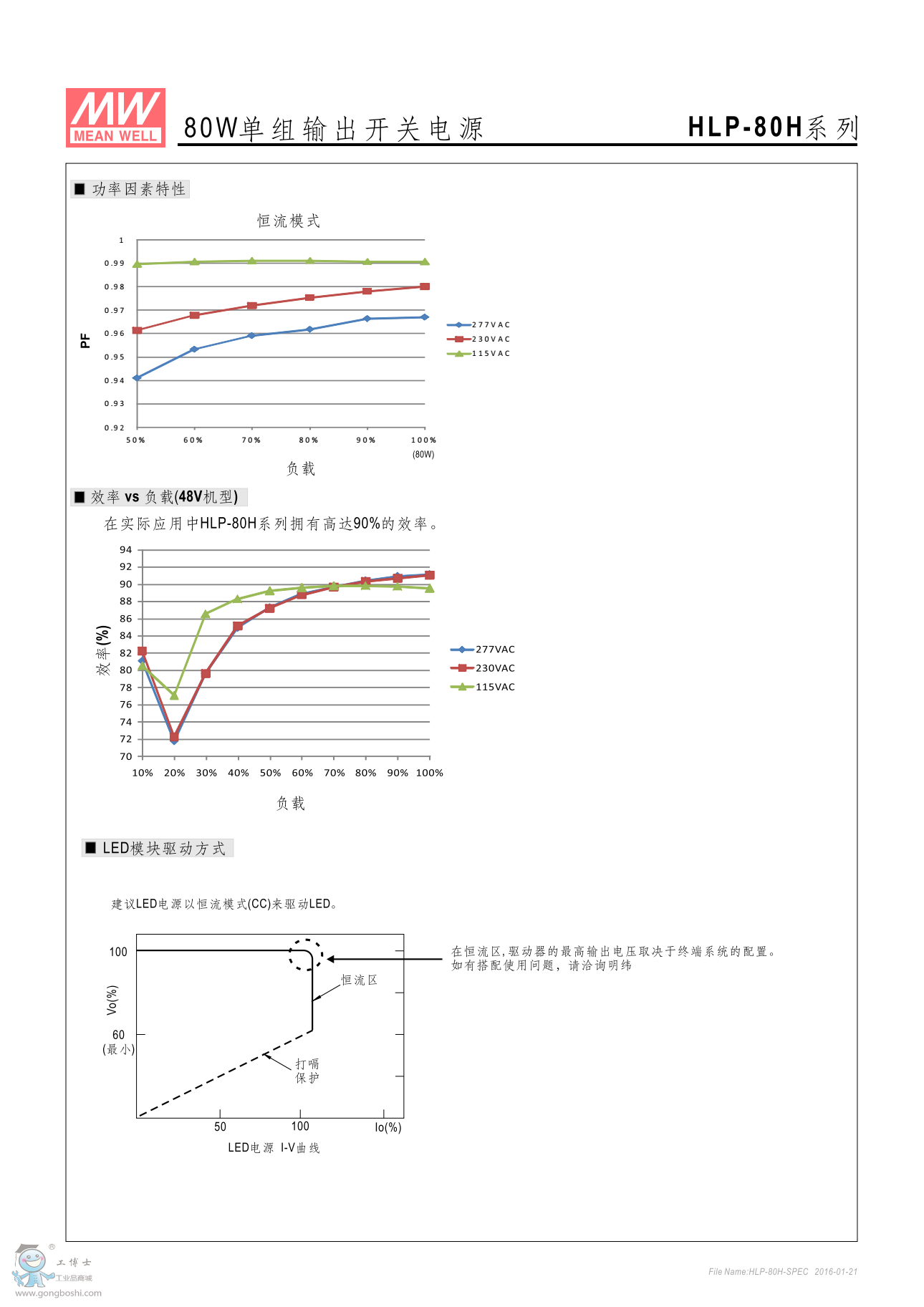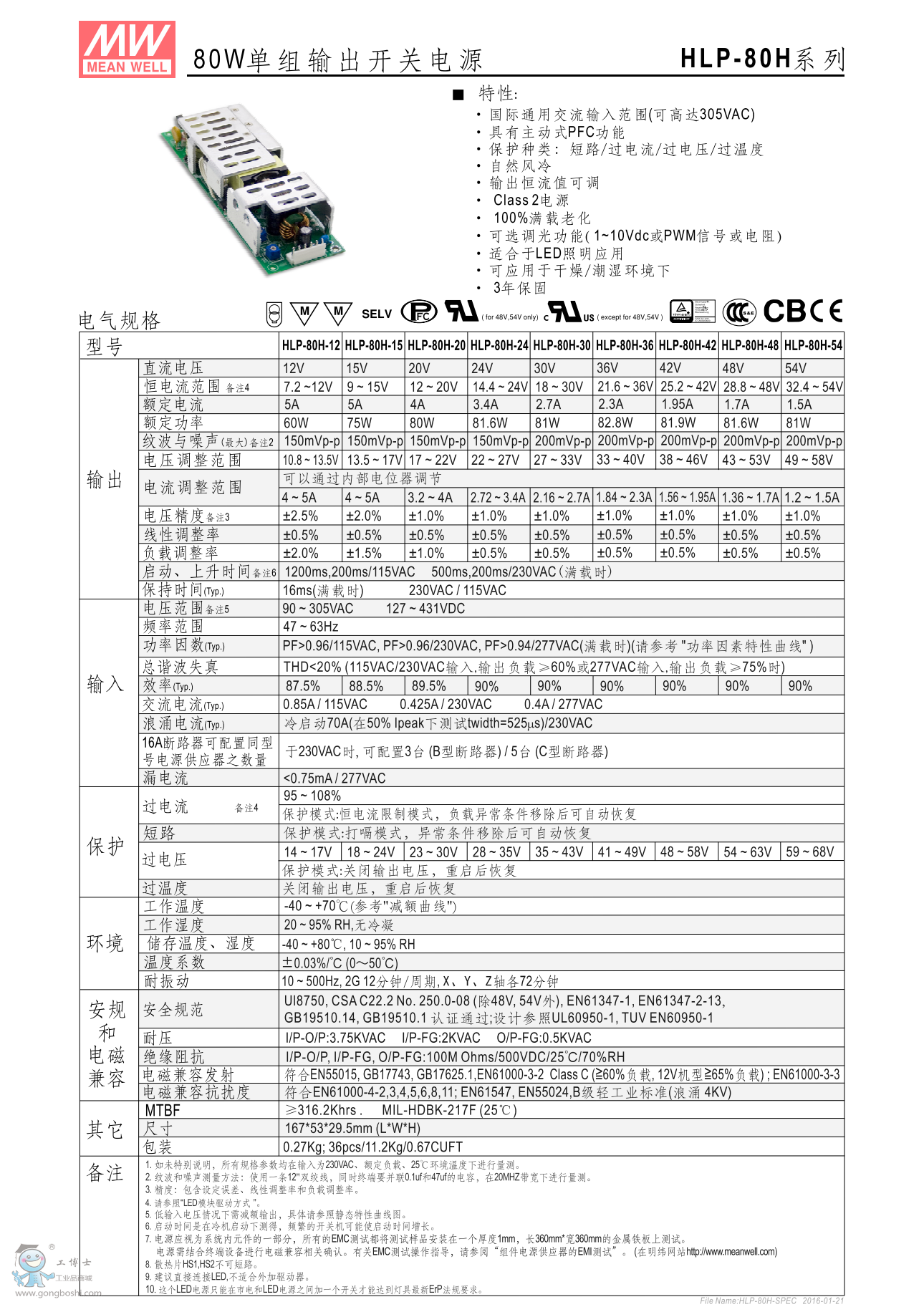 明緯HLP-80H-24 80W單組輸出具有PFC功能LED開關電源