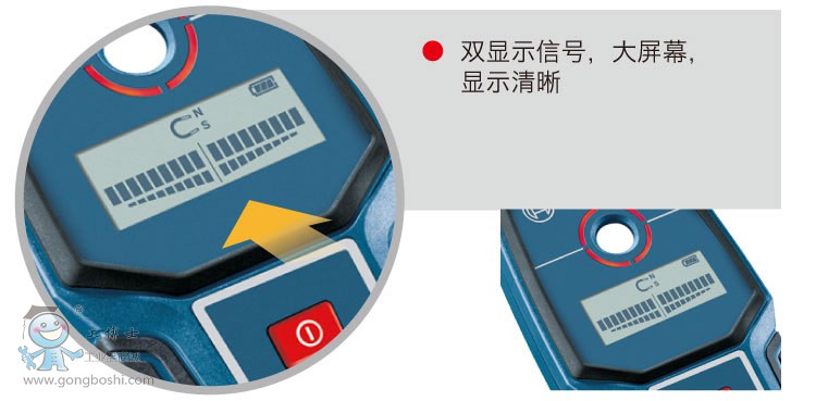 可測材料:金屬物體,帶電電線;*大探測深度:100毫米;電源:1*9 V 6LR61電池;尺寸:200*86*32毫米;重量:0.26公斤;防塵防濺保護:IP54