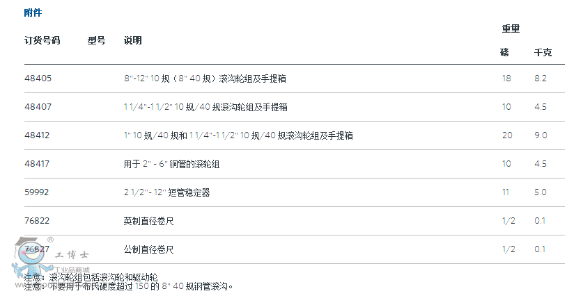 適用管徑 1" - 12" 10 規鋼管和不銹鋼管。
