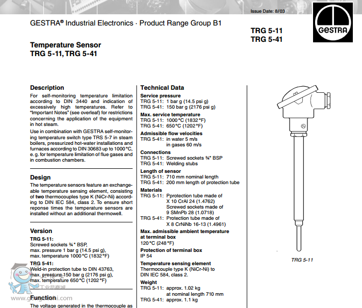 Gestra TRG溫度傳感器-福斯Flowserve