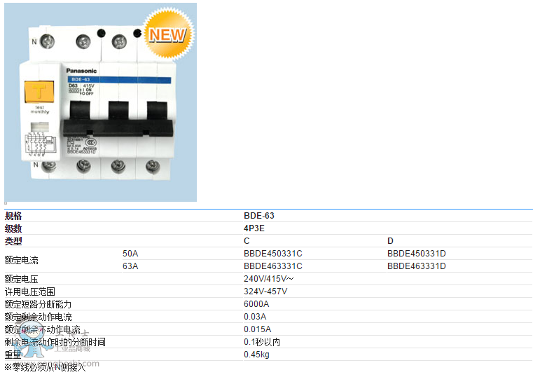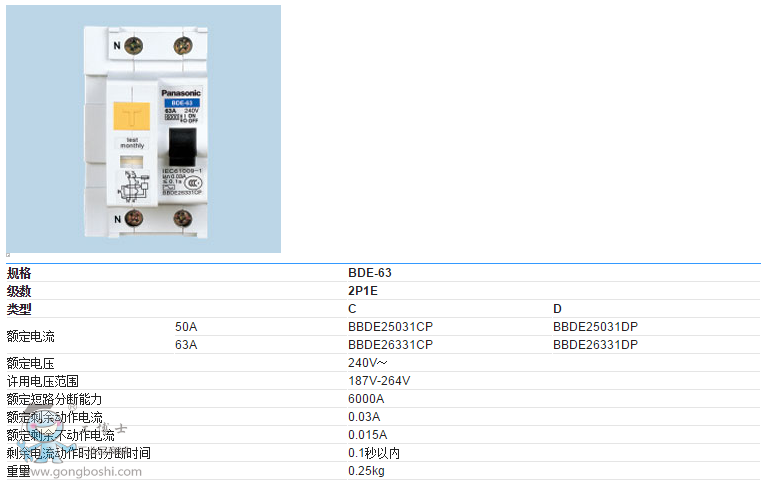 松下漏電斷路器BDE-63系列