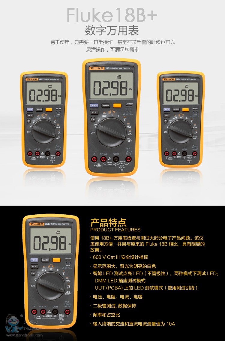 福祿克(FLUKE)F18B+ 數字萬用表 掌上型多用表 儀器儀表