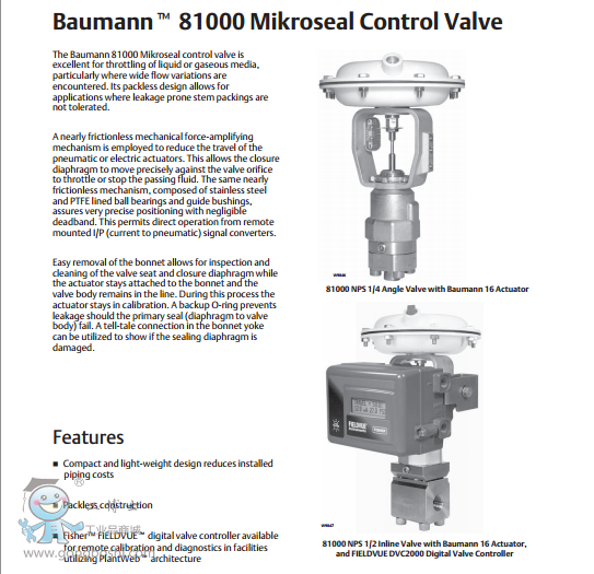 Fisher Baumann 81000 直行程低流量調節閥-費希爾Fisher