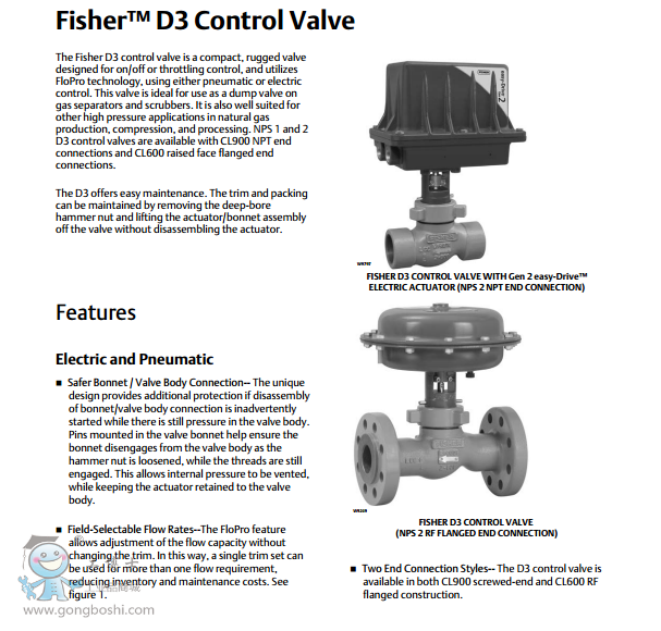 • 應(yīng)用靈活性—多種端部連接可供選擇、閥內(nèi)件材料和流通能力,都使得 D3 應(yīng)用廣泛,包括在酸性工況下使用。