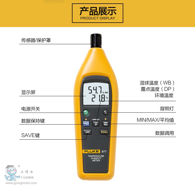 福祿克(FLUKE) F971 溫濕度測(cè)量?jī)x 溫濕度計(jì) 溫度計(jì) 儀器儀表