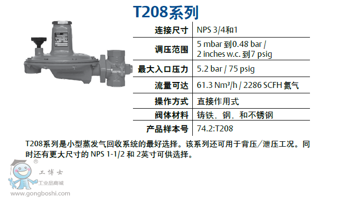 T208系列是小型蒸發氣回收系統的*好選擇。該系列還可用于背壓/泄壓工況。同