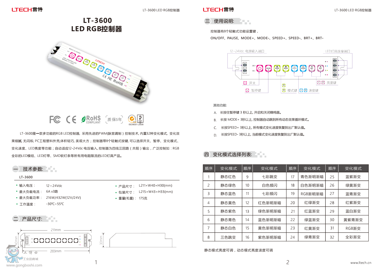 雷特LT-3600 LED RGB控制器