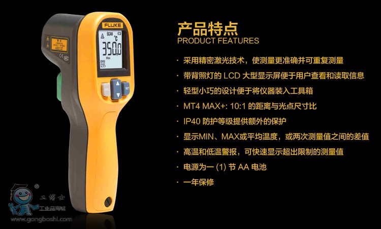 福祿克(FLUKE)MT4 MAX+ 紅外測溫儀 點(diǎn)溫儀 測溫槍 電子溫度計(jì)