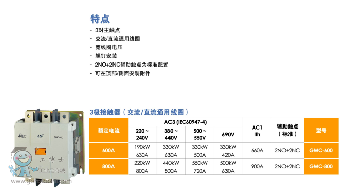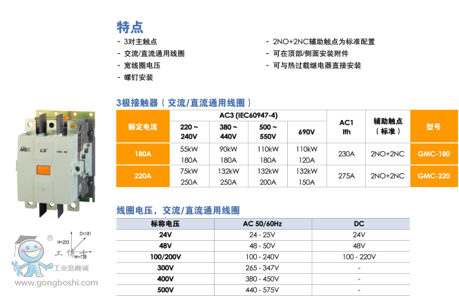 LS產電GMC-180 AC/DC 2a2b三極交直流通用接觸器現貨