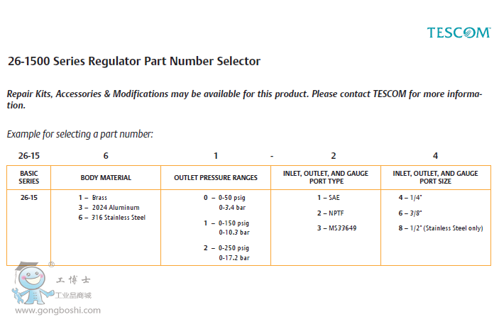TESCOM 26-1500系列 減壓調節閥-尼得科EMERSON TESCOM