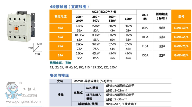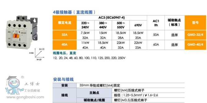 LS產電GMD-22/4 直流接觸器 22A 4P