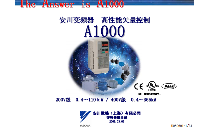 安川變頻器CIMR-AB4A0009FBA 3KW 高性能