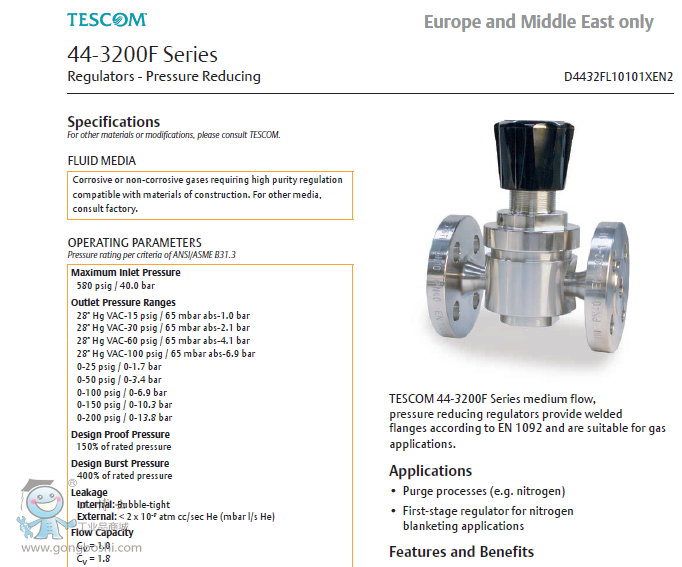 TESCOM 44-3200F 減壓調(diào)節(jié)閥-艾默生EMERSON TESCOM