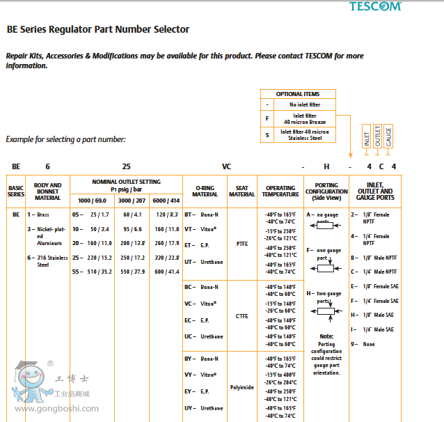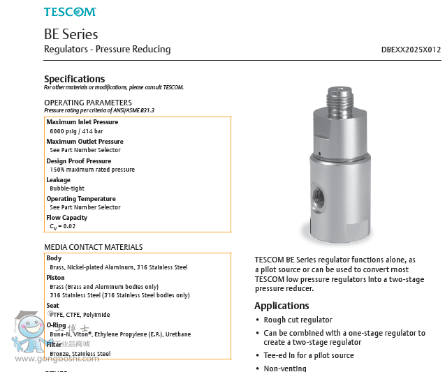 TESCOM BE Series regulator functions alone, as a pilot source or can be used to convert most