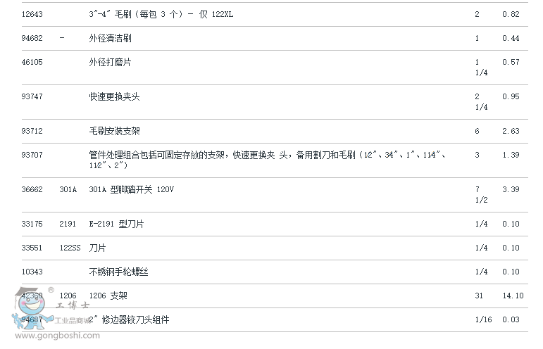管件處理組合包括6個毛刷、儲存架和夾頭。