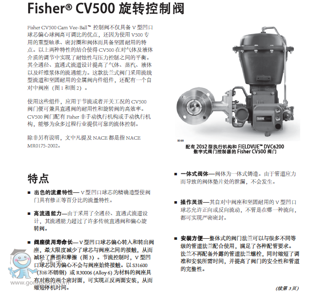 Fisher® - 費希爾偏心旋轉閥采用偏心安裝的閥芯或球芯,兼備旋轉閥的效率和球型閥的堅固耐用。Fisher®V500 設計適用于嚴苛和/或腐蝕性工況,它采用密封軸承、超大的一件式閥軸以及各種不銹鋼到陶瓷材質的可更換耐磨閥內件。Fisher CV500 具備和 Fisher V500 一樣的堅固耐用性,但它將分段式球芯用作控制組件,而不是用作閥芯。CV500 的容量比 V500 高,并且具有等百分比特性,能夠實現更好的控制性能。 兩款閥都采用花鍵閥軸,連接到 Fisher 旋轉執行機構上時,不會產生空轉。