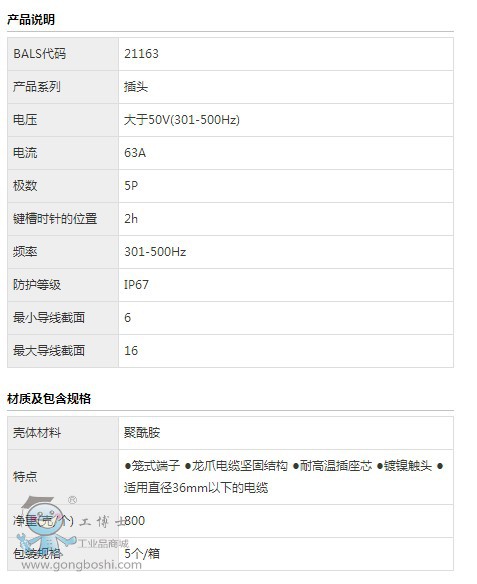 本公司專業銷售德國霸士全系列產品,工業插頭,工業插座,工業連接器,組合插座箱等,產品一律為原裝正品,假一罰十,請各位客戶朋友放心采購!參數