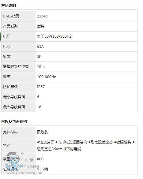 本公司專業銷售德國霸士全系列產品,工業插頭,工業插座,工業連接器,組合插座箱等,產品一律為原裝***,***,請各位客戶朋友放心采購!參數