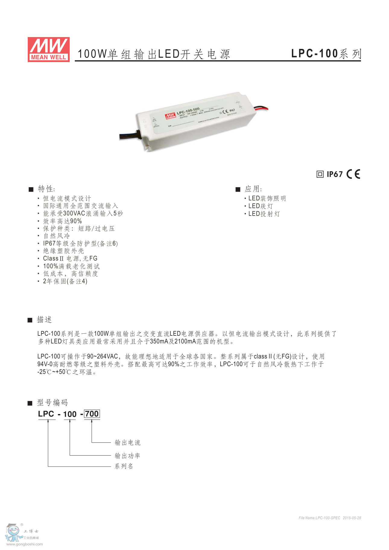 meanwell明緯LED開關電源LPC-100-1400