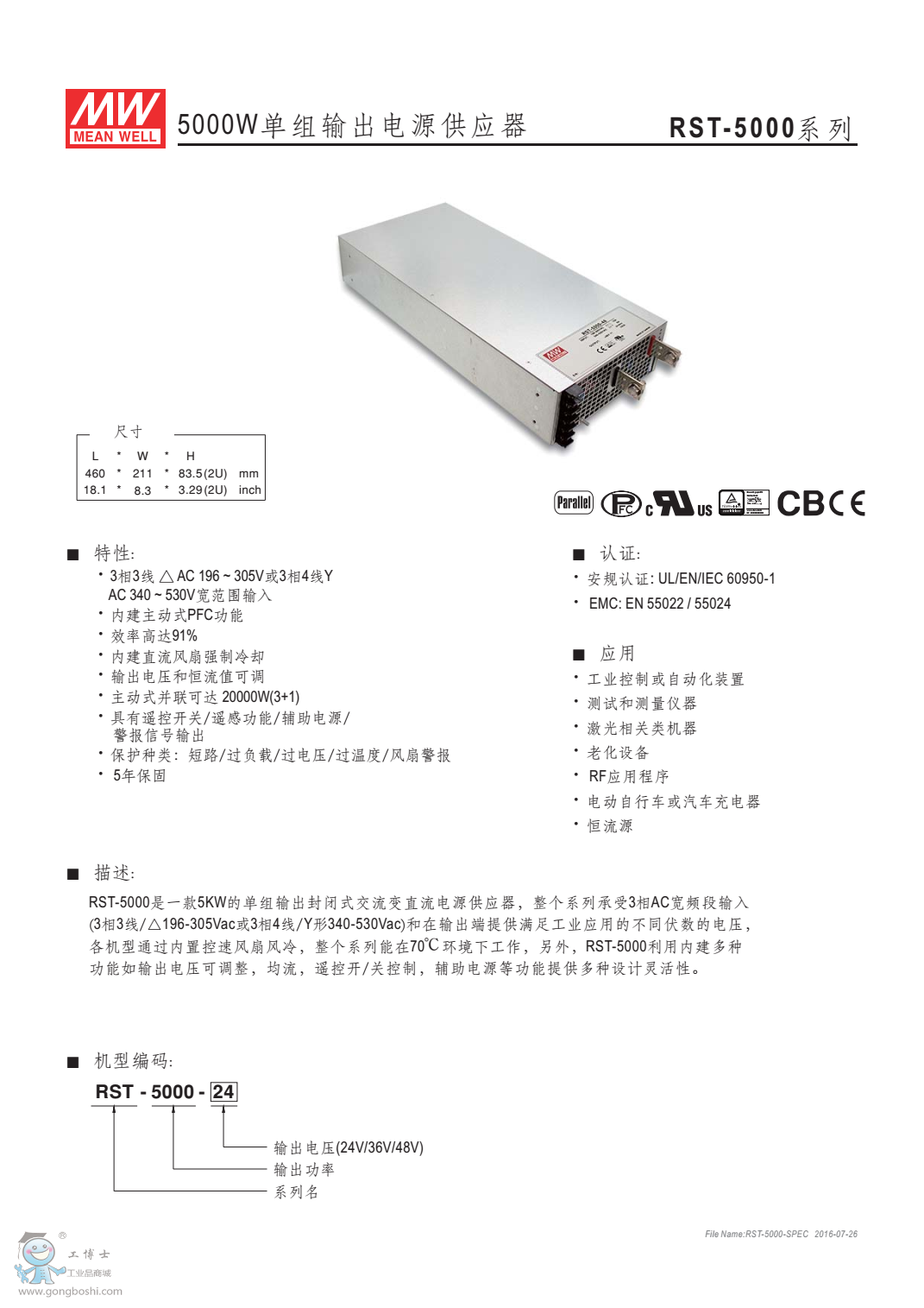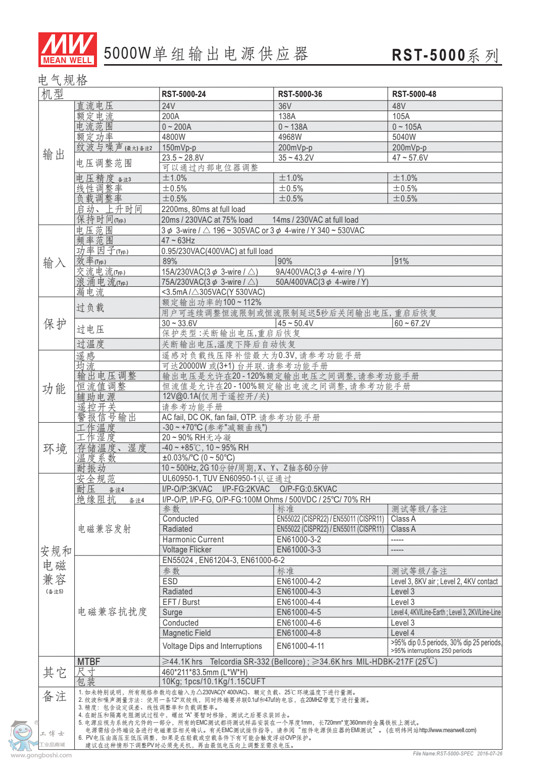 臺灣明緯可編程電源供應器RST-5000-36 5000W24V