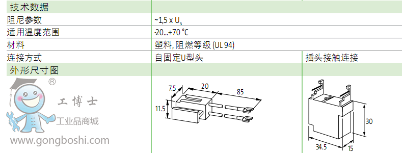 電動機接觸器有10針和1個接地連接點并內置抑制模塊和預制線纜