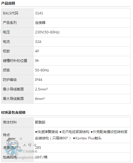 德國霸士BS 3141連接器 230V/32A/4P/IP44