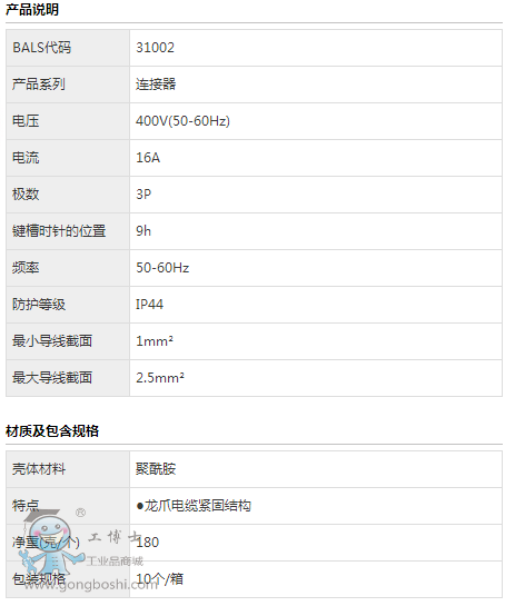 德國霸士BS連接器31002 400V/16A/3P/IP44