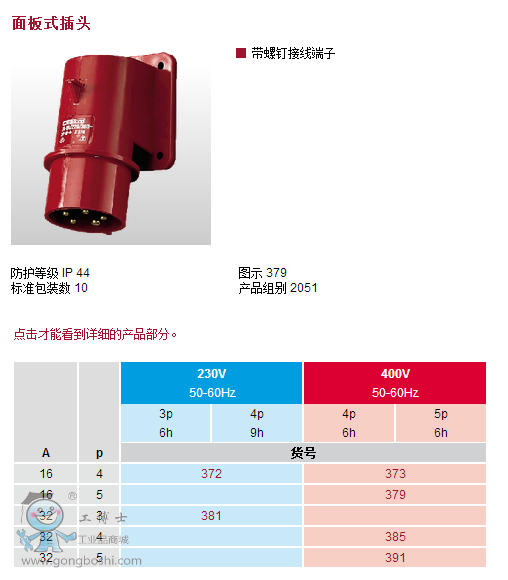 德國曼奈柯斯裝置插頭 379面板式 400V/16A/5P/IP44