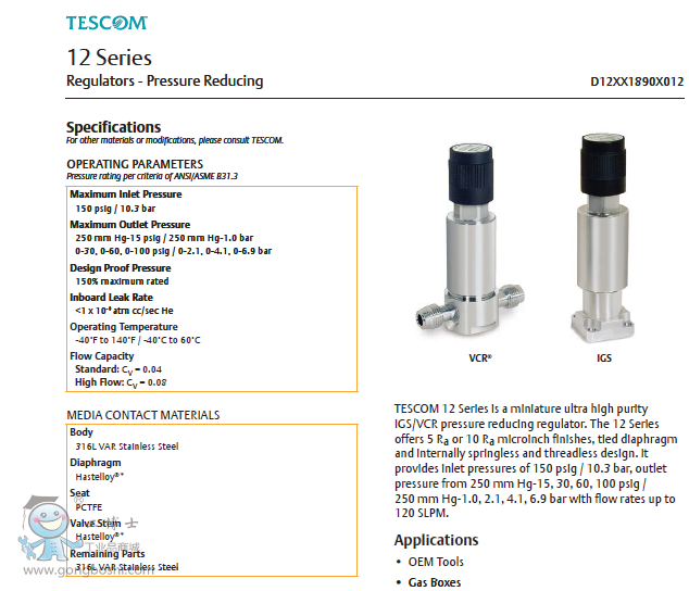 250 mm Hg-1.0, 2.1, 4.1, 6.9 bar with flow rates up to