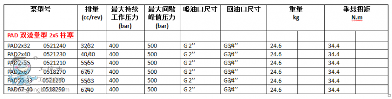 PA-PAC-PAD 系列由3類型組成,所有針對車輛的設計都滿足持續工作壓力400bar和500bar峰值壓力。