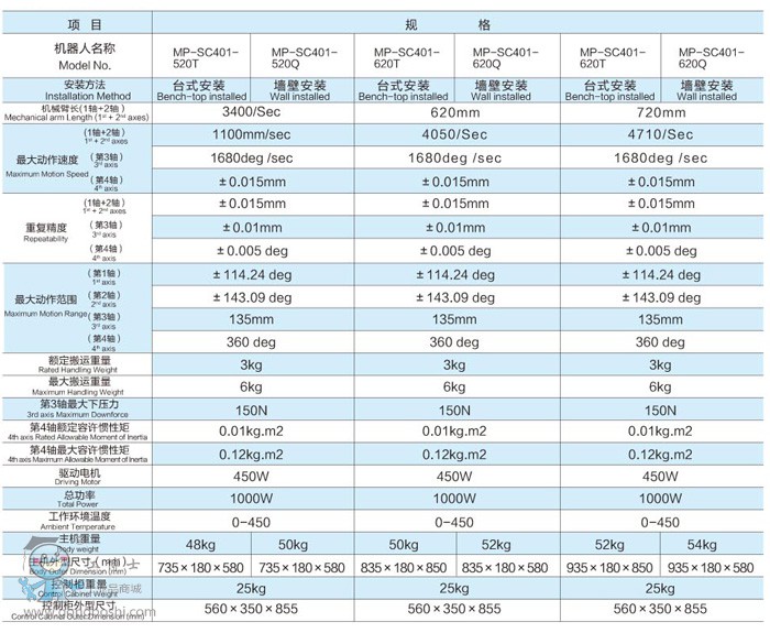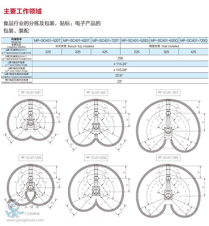MP-SC500水平式機械手是實現高精度拾放料作業的先進機器人解決方案,是一款從食品、藥品、化妝品的生產線到太陽能電池板組裝等各種領域均可使用的高速分揀機器人。水平搖擺式工作模式,擁有操作速度快、有效載荷大的特點。高僅75cm的小體積使得具有靈活的安裝方式,可采用壁掛安裝或者臺式安裝,能夠實現狹隘空間內的精細操作,有效節約占地空間。