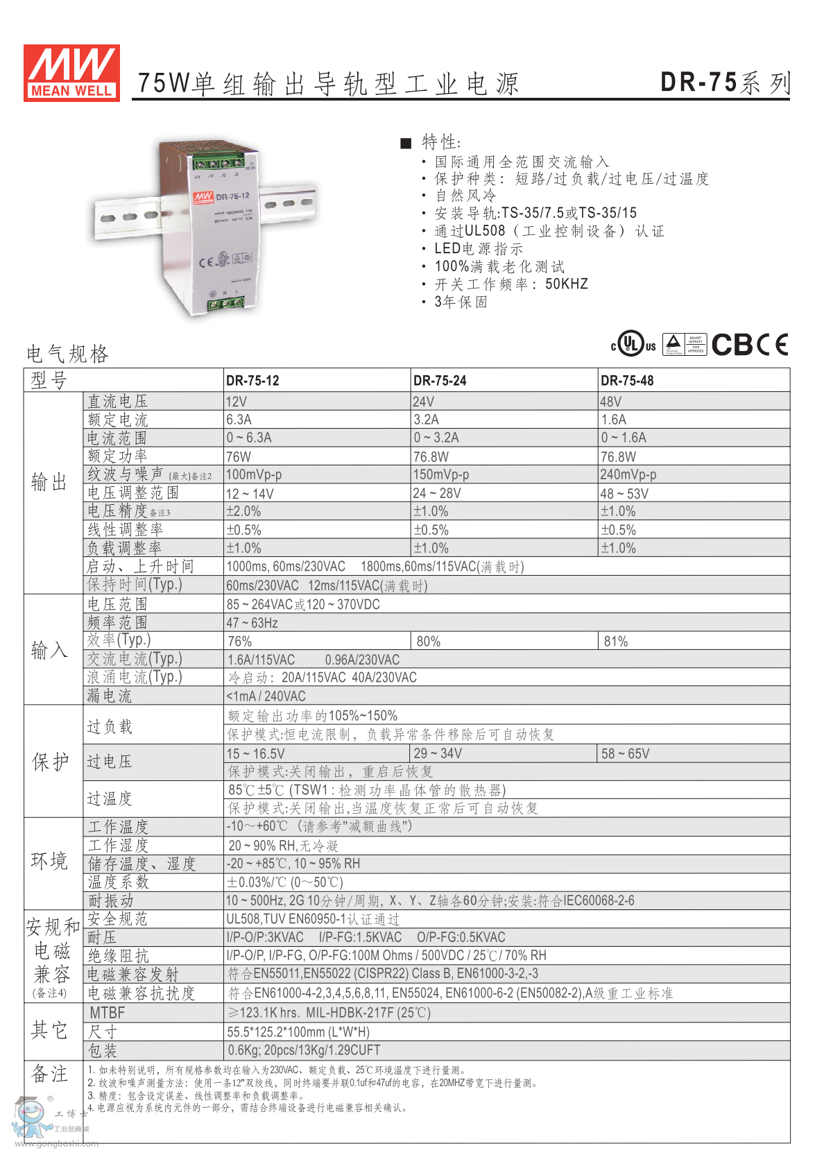 臺(tái)灣明緯導(dǎo)軌電源DR-75-12