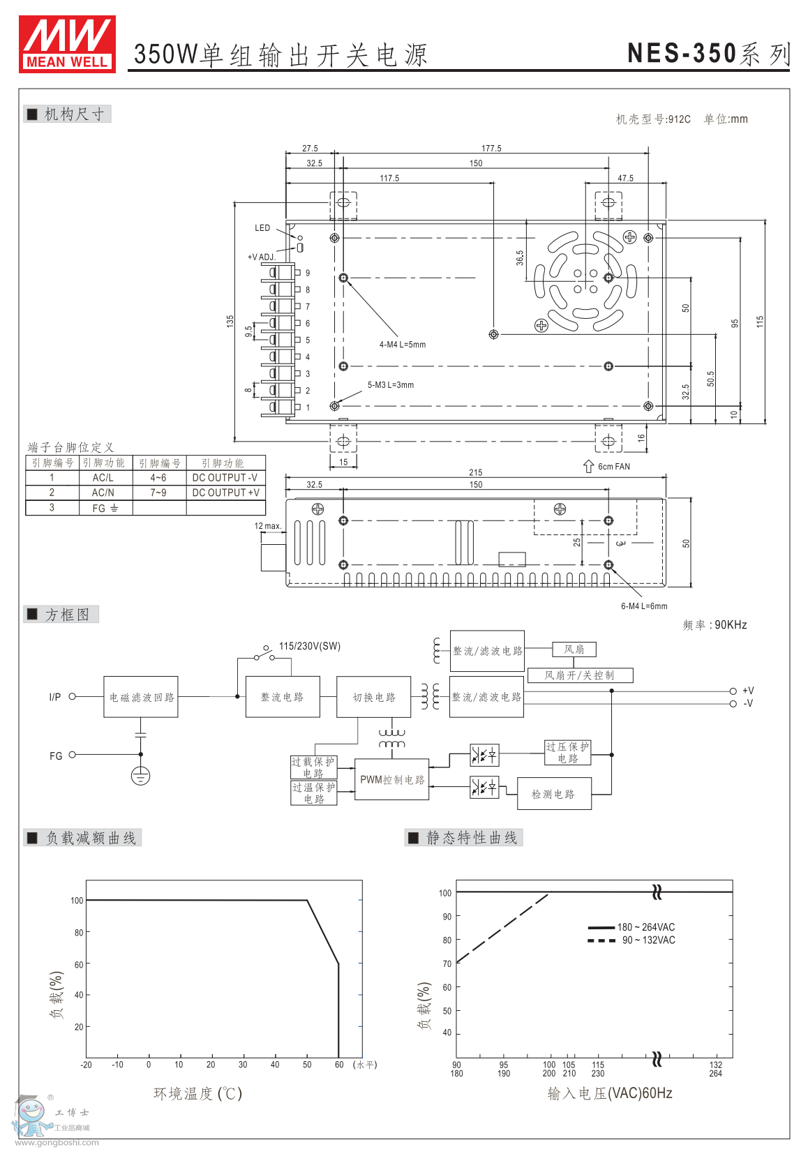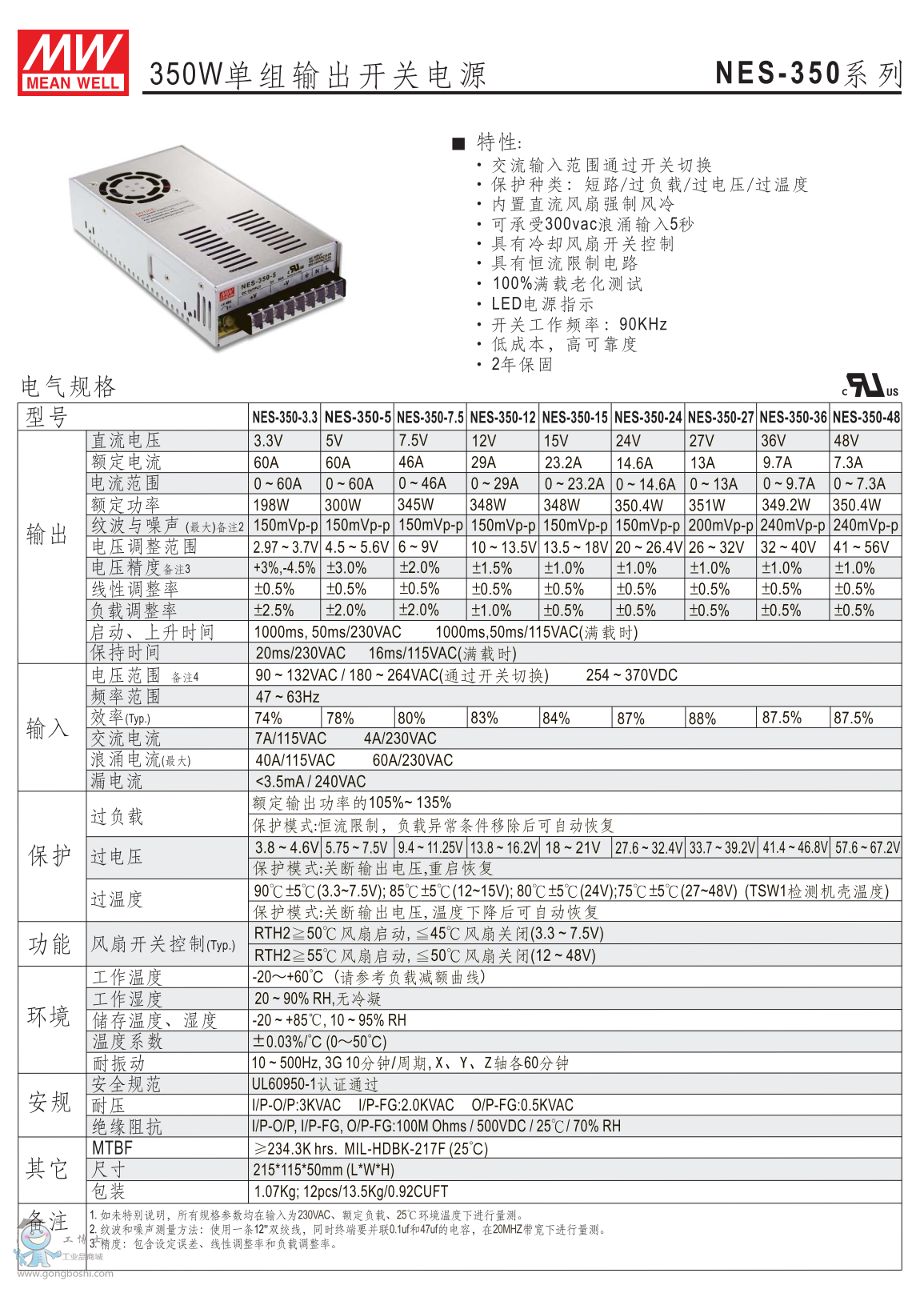 臺灣明緯開關電源NES-350-24經濟網殼型