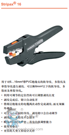 魏德米勒已經成為了在切割鋁導線、銅導線方面的***。魏德米勒斷線工具的選擇范圍非常廣泛,既有適合于橫截面積很小的導線的斷線工具,也有適合于切割橫截面積很大的電纜的斷線工具。斷線工具的特殊機械構造把使用者在使用時所需要的力量降至*低。