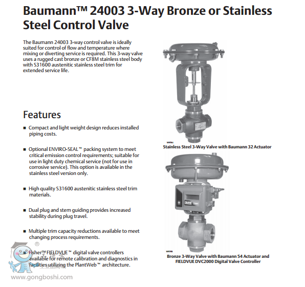 Fisher費希爾 ®Baumann™24003通用直通調節閥