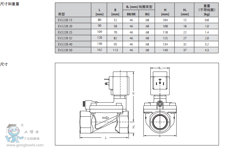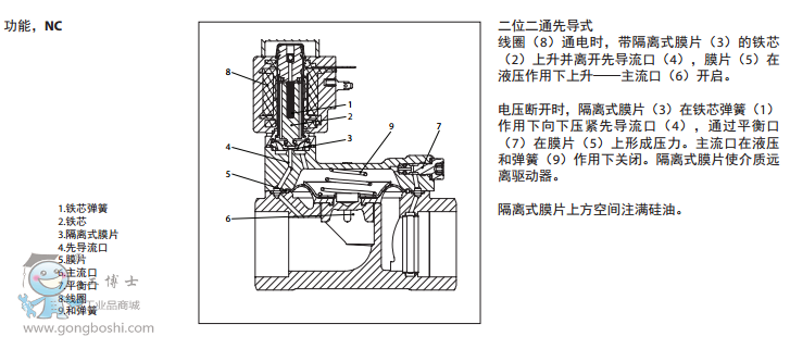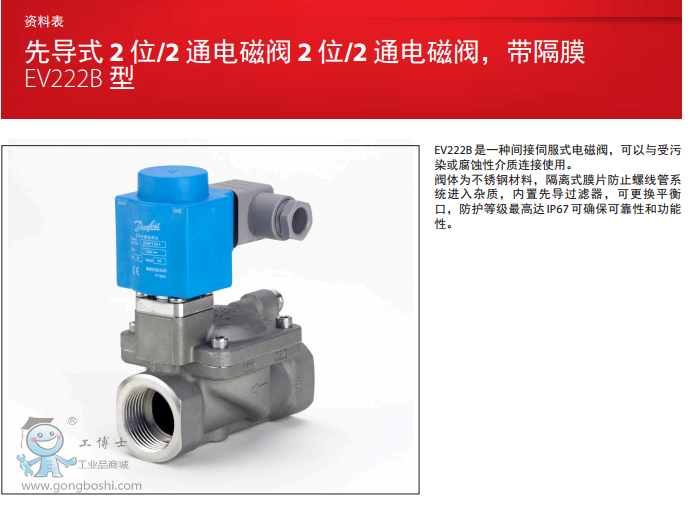 丹佛斯Danfoss EV222B, 先導(dǎo)式 2 位/2 通電磁閥 2 位/2 通電磁閥,帶隔膜