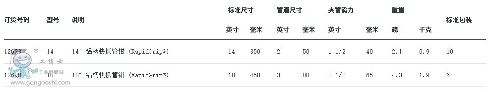 具備重負荷快抓管鉗 (RapidGrip®) 的所有優勢。比重負荷型號輕 35%。