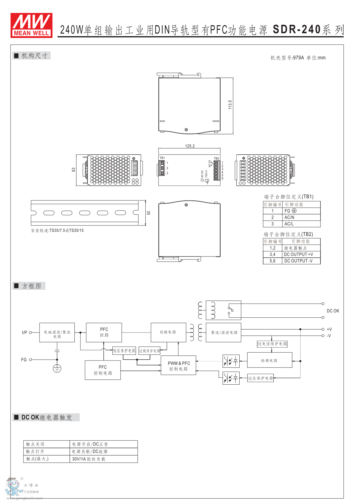 明緯導(dǎo)軌電源SDR-240-48 PFC功能 2年質(zhì)保