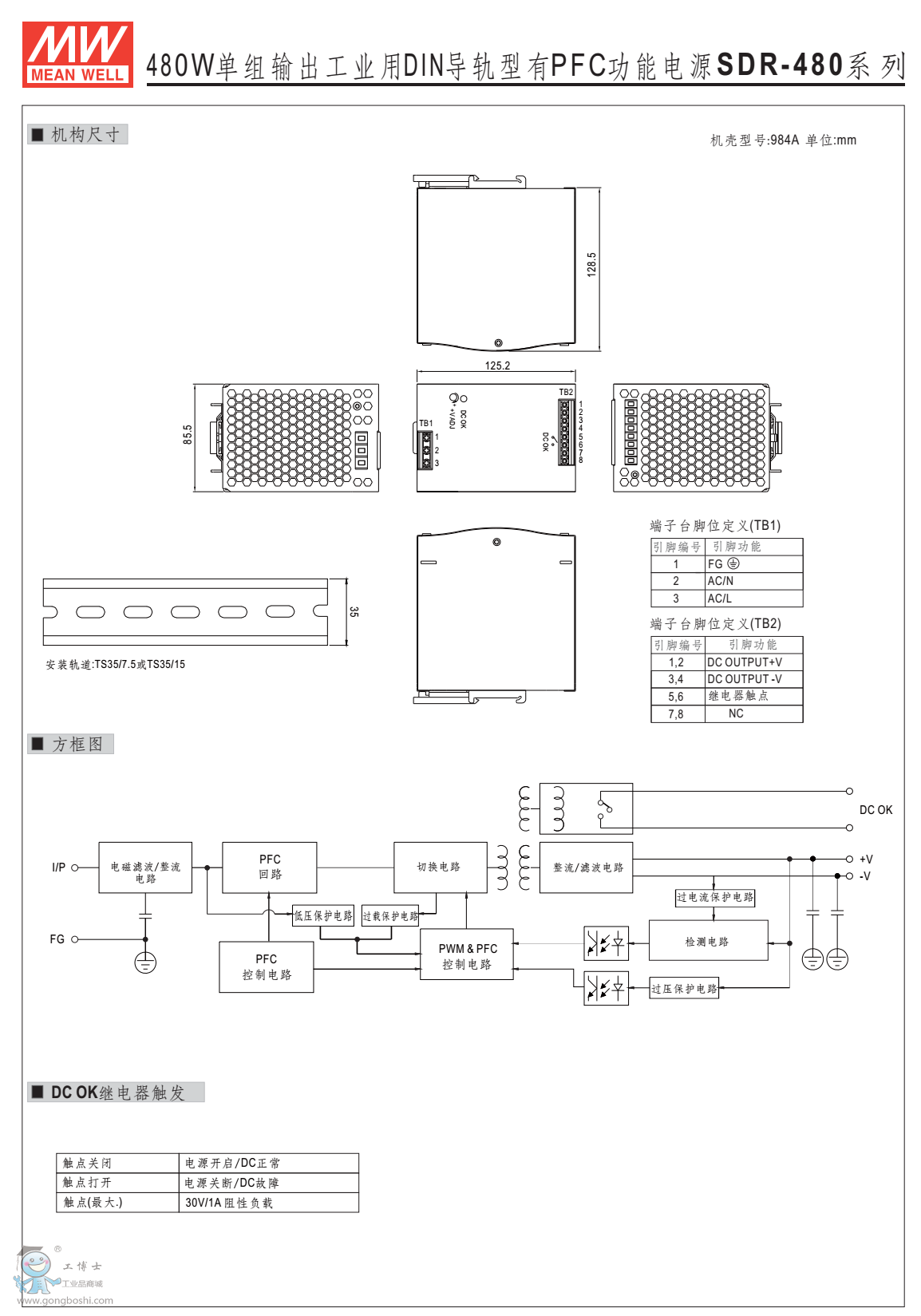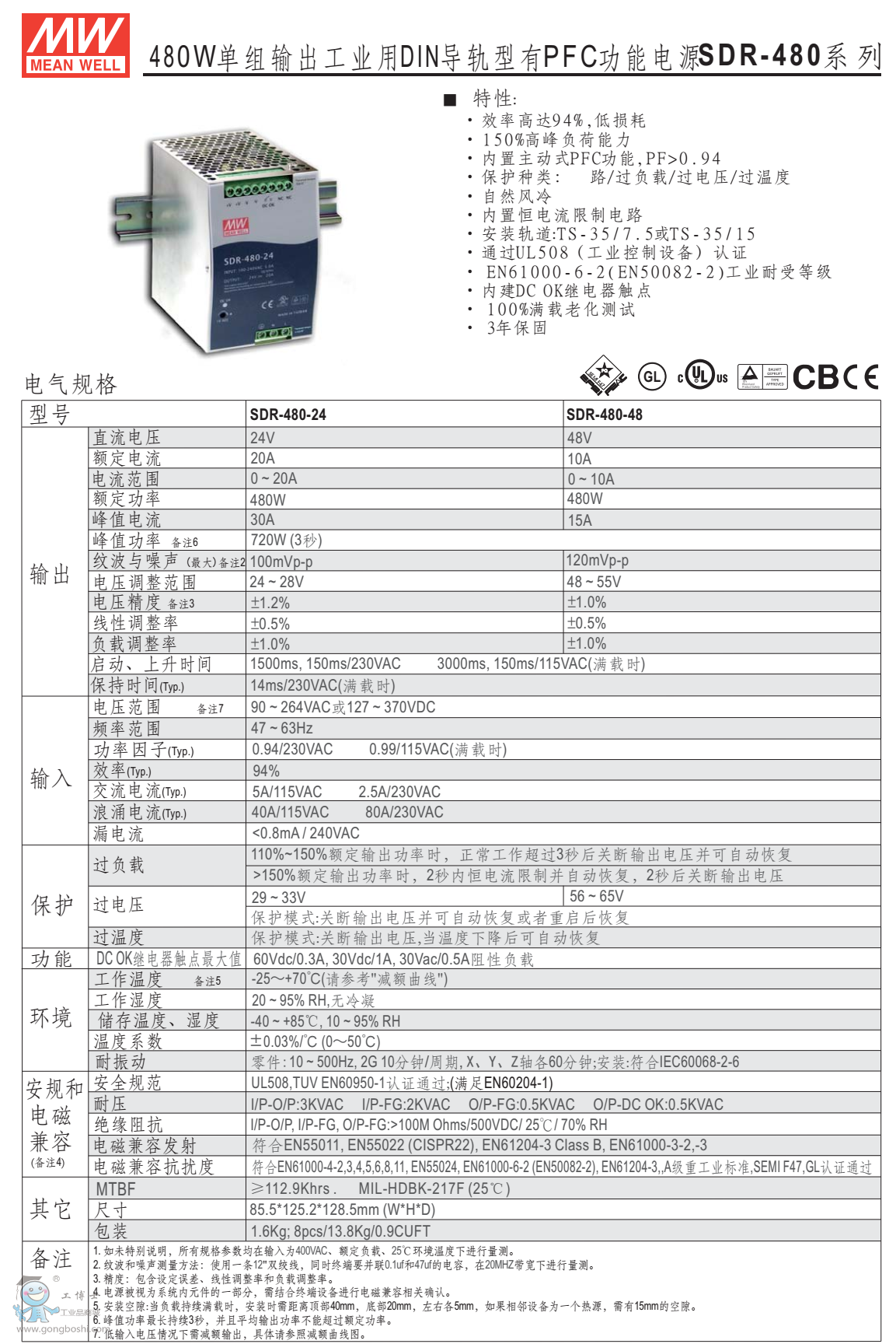 明緯導軌電源SDR-480-24 PFC功能 2年質保