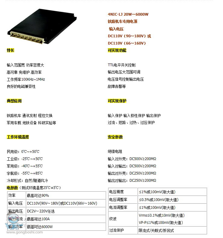 朝陽電源4NIC-LJ 20W~6000W鐵路機車專用電源 |