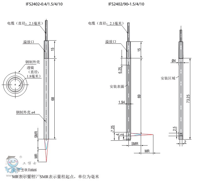 型探頭系列confocalDT IFS 2402 雖然外形直徑僅僅有4mm,但能提供光譜共焦測量理論的全部優點。源于特殊的專利光學設計,該緊湊型傳感器試用于狹窄縫隙和小孔測量。傳感器分為軸向和90°徑向兩種。針對磁性環境安裝,我們還可以提供鈦金屬外殼的傳感器。