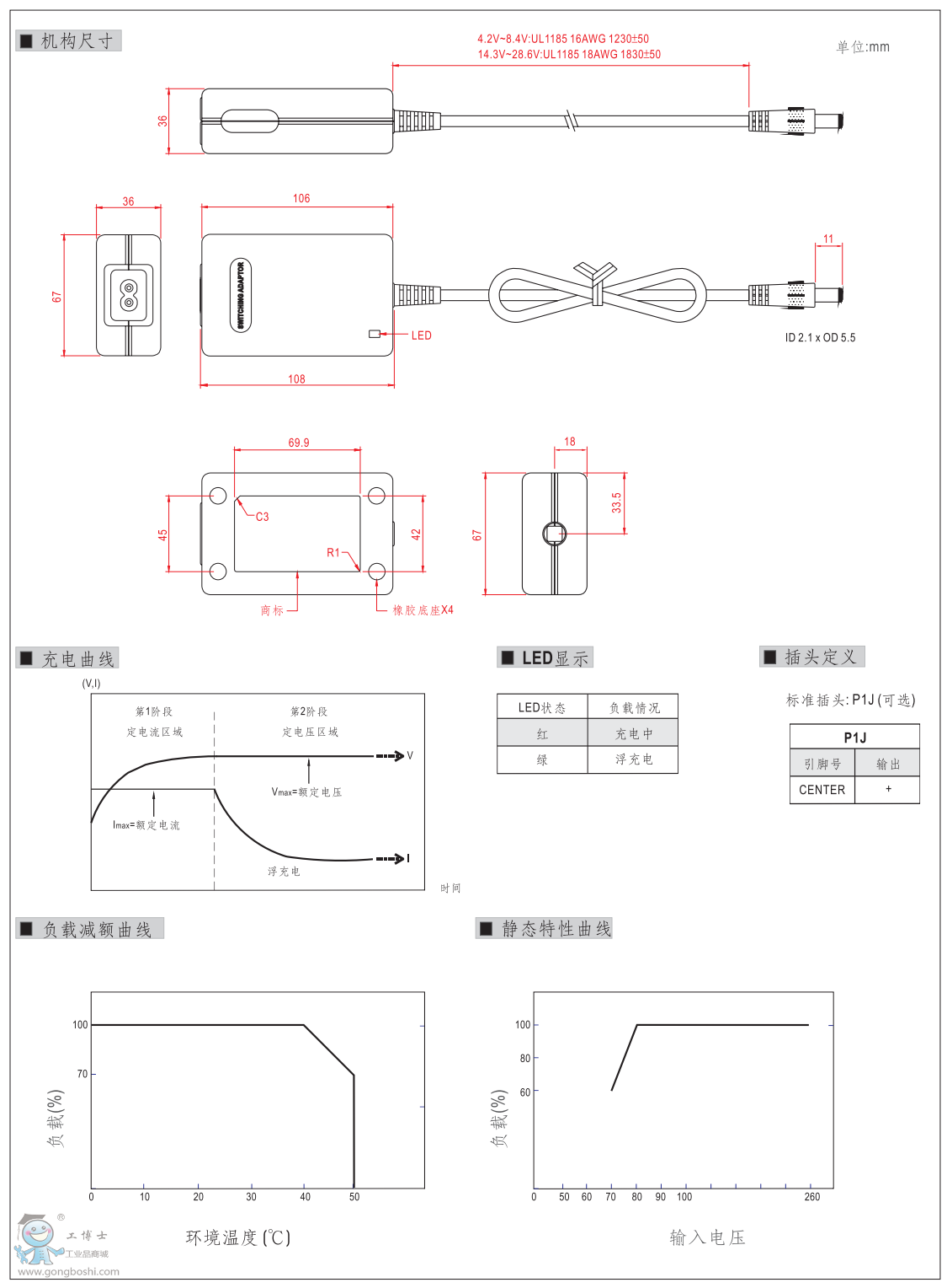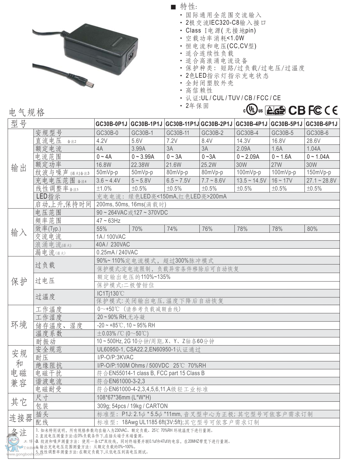 臺灣明緯GC30B-11PJ充電型電源適配器