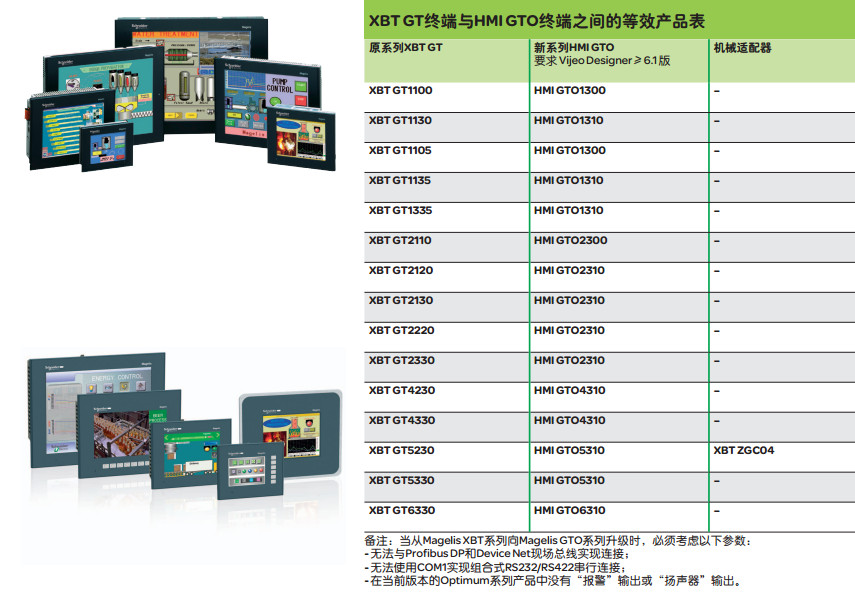 | 原XBTG系列與HMIGTO新產(chǎn)品對照表 |