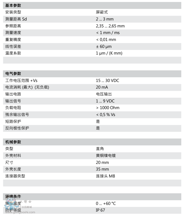 Baumer/堡盟IWFM 20U9503/S35 電感式測距傳感器