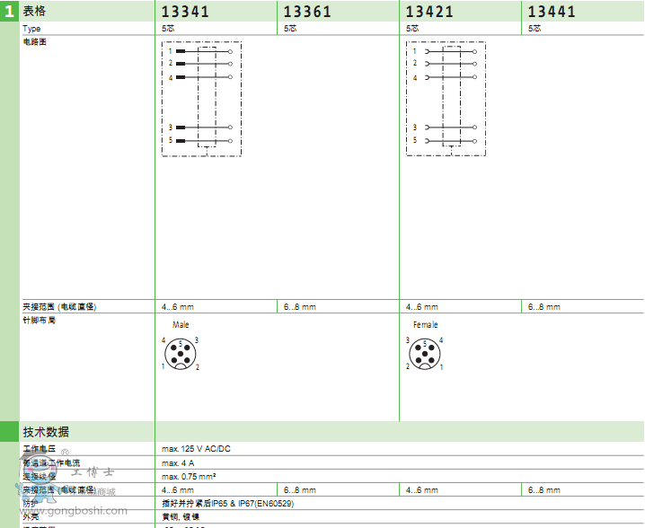公頭/母頭,直式插頭/90°彎頭插頭,3-/4-