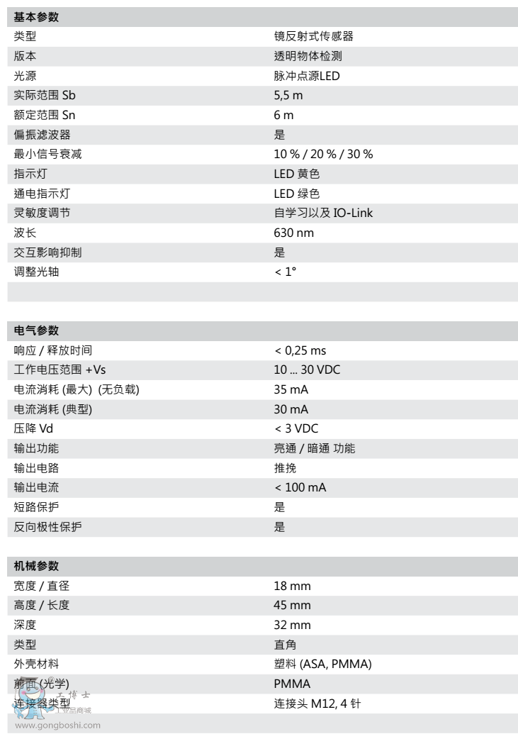 Baumer/堡盟O500.RP.T-11157351鏡反射式光電傳感器