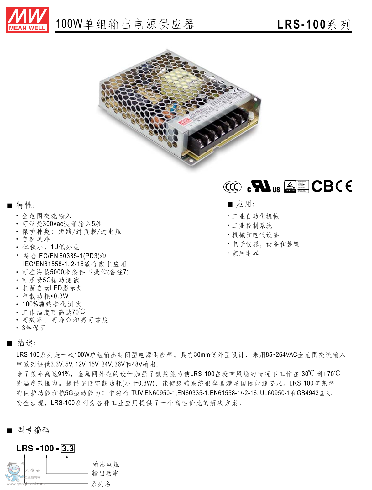 明緯開關(guān)電源LRS-100-24 24V4.5A超薄系列
