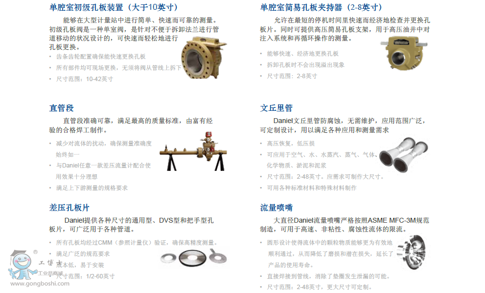 Daniel 差壓產品可提供多種尺寸、額定壓力和連接件選擇,且 符合大型應用場合或特殊應用場合的嚴格要求。它們廣泛用于各種氣體應用場合中,包括輸送、管道、分輸、近海及其他能源和加工行業,并已通過全球許多監管機構和能源貿易協會的認證。