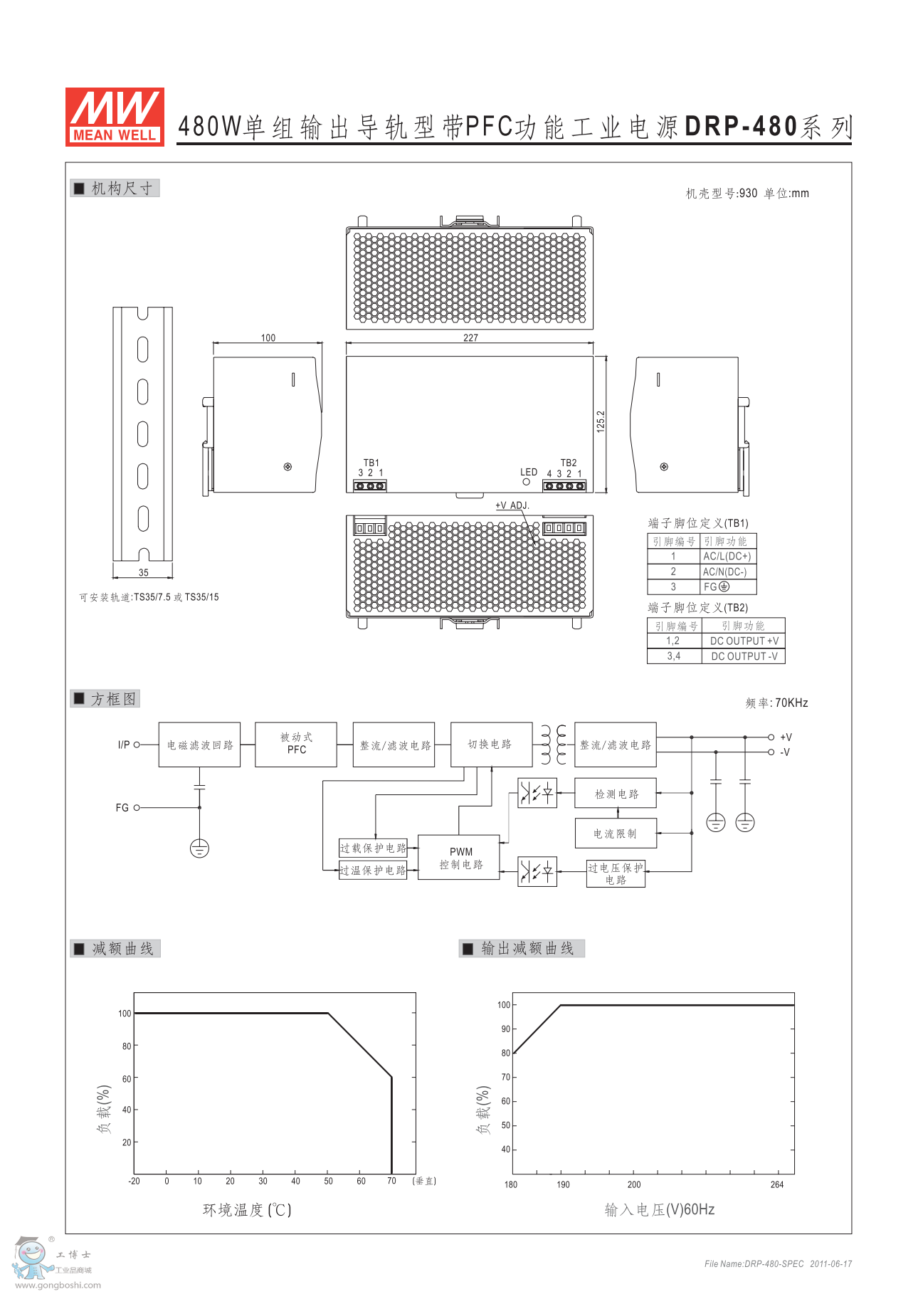 臺灣明緯導軌電源DRP-480-48 48V10A 有PFC功能