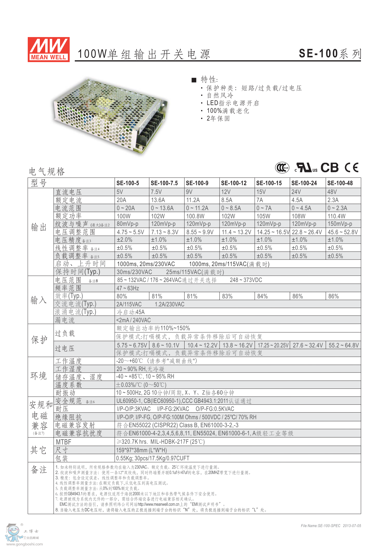 本公司專業銷售明緯MEAN WELL全系列產品,現貨庫存充足,保證全新原裝正品,2年質保。專業服務高性價比,選型/報價歡迎在線咨詢。 產品特性: • 無PFC功能,具備完整保護功能 • 經濟型中高瓦數安規符合機型系列
